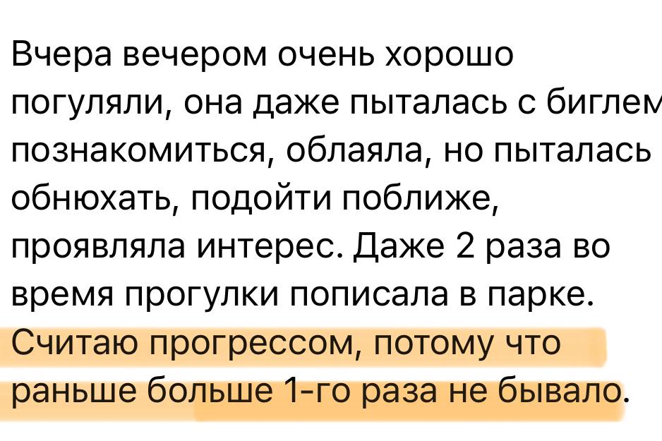 возбуждение через край: на улице и/или дома собака взвинчена, не слышит; выполняет команды формально и тут же вскакивает; скулит или лает при выходе на улицу от избытка чувств и подобные.