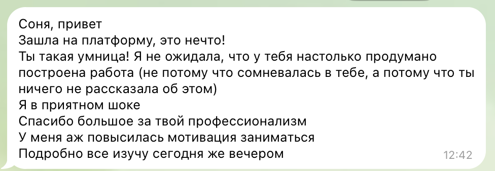 1 онлайн-консультация + доступ к обучающей платформе (не ограничен по времени!) + план занятий в мессенджер + 2 недели я на связи.